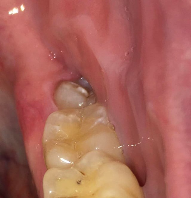 Heb al circa een week last van pericoronitis (wel vaker gehad). Deze keer duurt de genezing wat langer. Pijn is helemaal weg, maar het tandvlees daar is nog zacht en niet strak tegen de verstandskies. Foto 1 is hoe het nu is, zacht tandvlees, en foto 2 toen het gezond was waarbij het tandvlees strak is. Wanneer zal de zachtheid weggaan? Ik spoel al dagelijks met zoutwater. Ben ook van plan om in 2026 mijn verstandskiezen te verwijderen. Foto 3 en 4 zijn foto's van mijn verstandskiezen, heb alle 4 al meer dan 12 jaar niet laten trekken, maar denk dat ik het beter kan doen? Werd wel vaak gezegd tegen me dat het slim is om ze te laten trekken, maar ik ben altijd bang van zulke behandelingen.