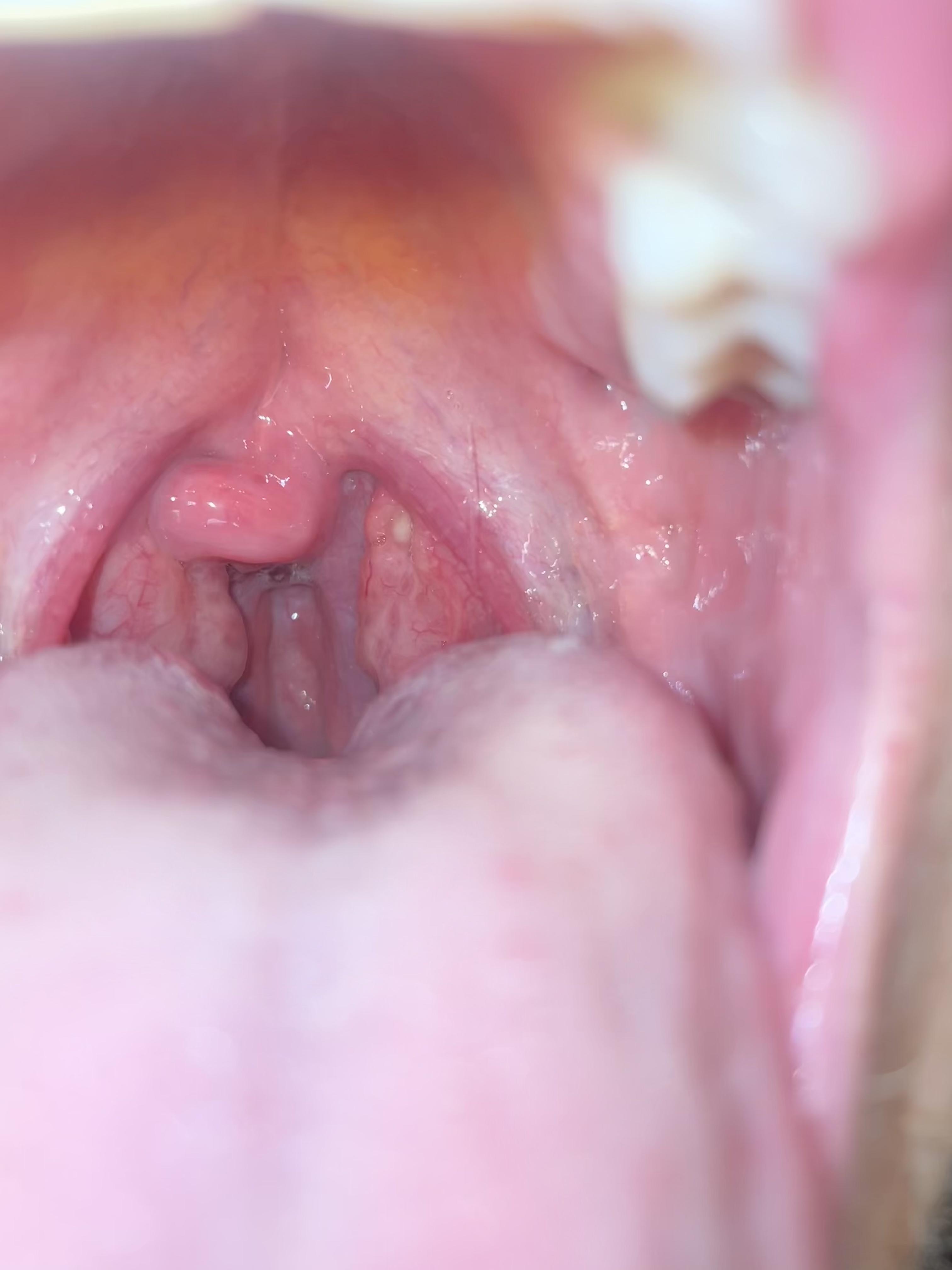 Het is heel waarschijnijk een amandelsteen, het is een steentje gevormd met bacteriën, bloedcellen etc. Het kan een naar geurtje teweeg brengen. Je kan het zelf verwijderen maar doe het dan wel voorzichtig. Of wachten tot het natuurlijk eruit valt