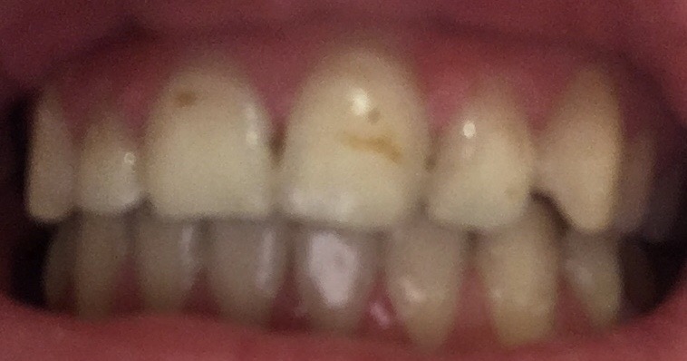 nu heb ik voor een bijna een jaar terug de tandarts gevraagd er wat aan te doen voor langdurige termijn, omdat ik er zelf erg onzeker door ben, er wordt zo vaak gezegd van er zit wat op je tand, waarop ik dan moet antwoorden dat dat niet zo is en mijn tand zo is --> gevolg nog meer onzekerheid. Tandarts heeft er toen als het ware een laagje vulling op gedaan, dit heeft behoorlijk wat gekost voor mij als student (paar 100 euro). Sinds die behandeling was het weer heel mooi, een mooi geheel en geen streepje of vlekken of puntjes te zien, echter is nu alles weer zichtbaar en weet ik zelf niet hoe dat komt. Het is net alsof de vulling er is afgebrokkeld