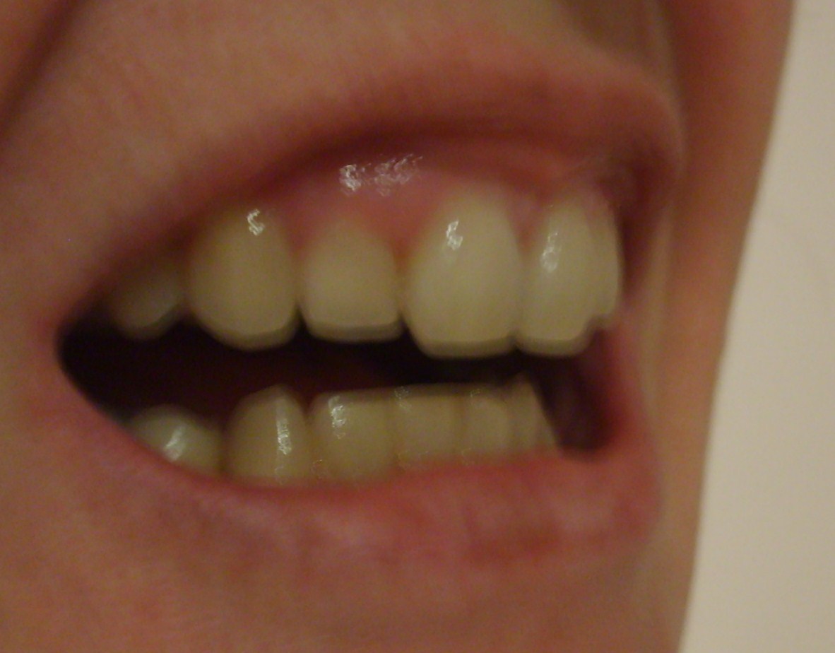 Mijn tanden zijn weer iets rechter gaan staan, maar zijn niet helemaal zoals toen hij de blokjesbeugel eruit gehaald heeft.
