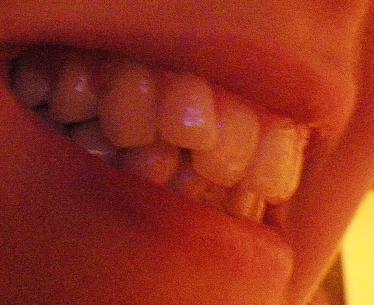 Ja das minder ja, te druk daar bovenin denk ik. Ik had zelf ook 1 scheve voortand (bij mij drukte die tand die scheef staat, mijn binnenste voortand naar binnen toe). Heb maar een beugeltje genomen en nu staat ie weer recht. Als het geen probleem is qua kosten zou ik het gewoon doen, witte brackets en het valt haast niet op...