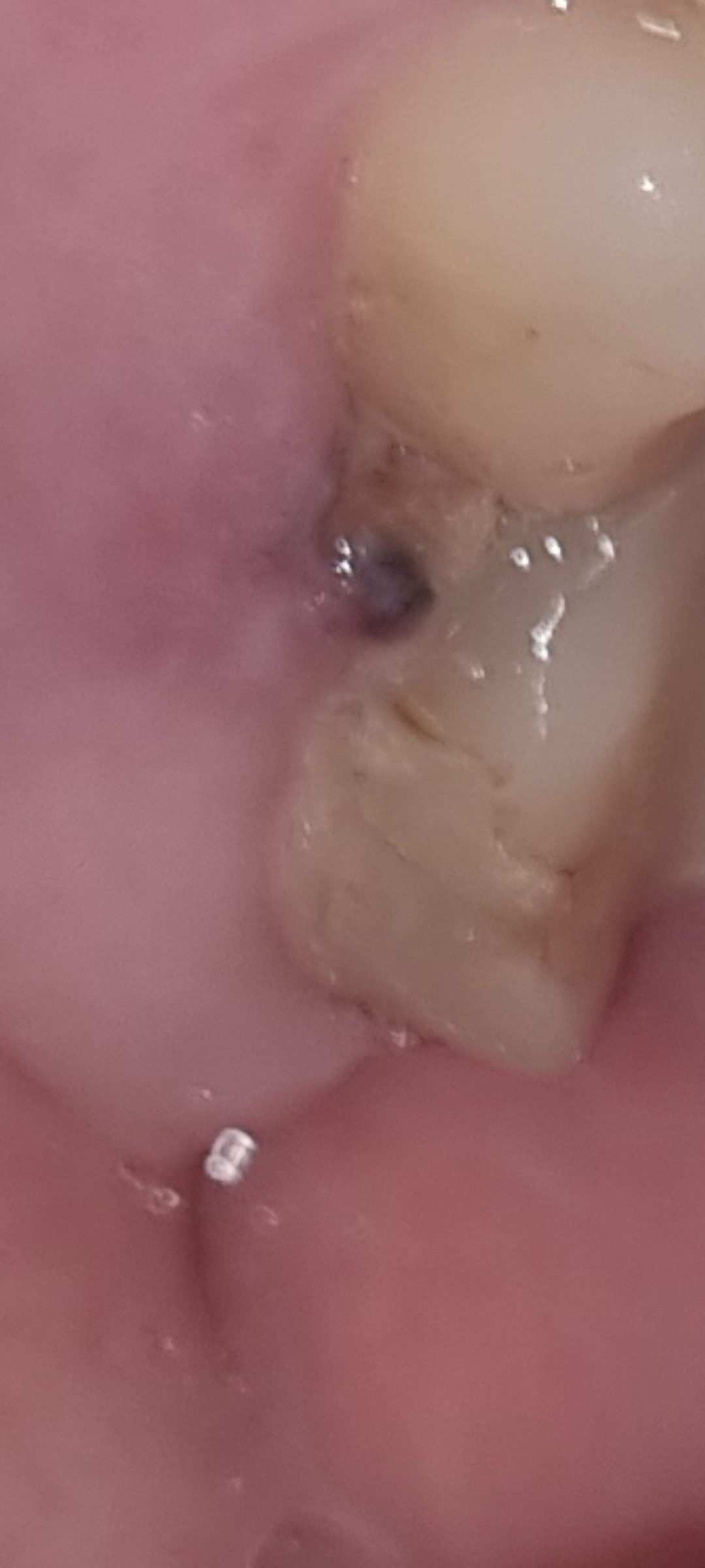 Verloop v tijd????? hoe lang geleden heeft u die appel gegeten??? hoe heeft u in de tussentijd schoon gemaakt.de foto is voor mij niet duidelijk genoeg. wat zegt uw tandarts??.