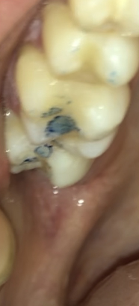 Vanmiddag heb ik een (diep) gaatje laten boren tussen/in een kies ergens achterin mijn bovengebit. Toen ik vlak na de behandeling naar de kies keek, zag ik wat grijze plekjes, maar deze zijn nu (grotendeels) weer wit. Kan dit een verkleurde vulling zijn, of is dit een reactie van mijn tand op de ingreep? Is dit normaal?