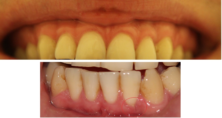 Dat van de foto ziet er eerder uit als irritatie door onder het tandvlees liggende stukjes tandsteen.
