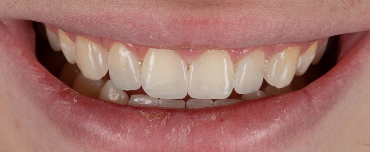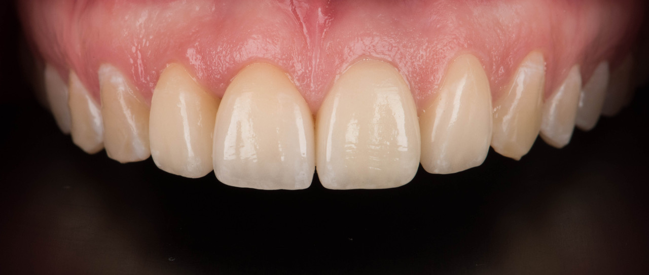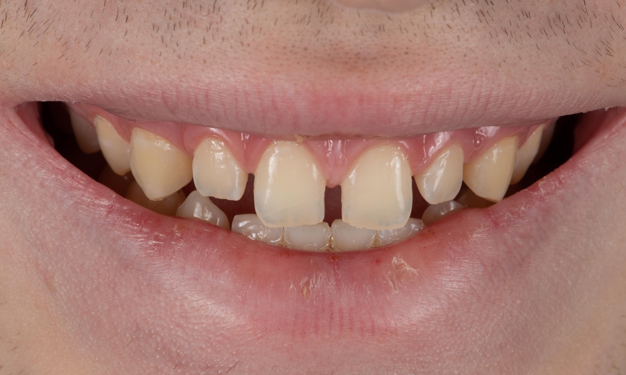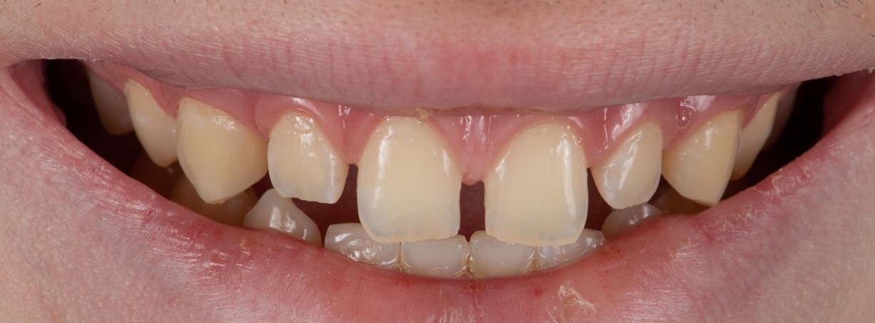 Tanden met spleetje voor de behandeling       Behandeling met facing na de behandeling